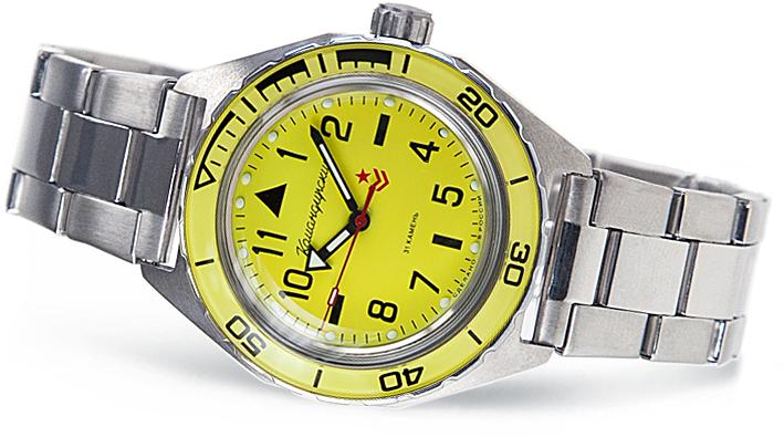 Мужские наручные часы Восток Командирские 650859. Механические с автоподзаводом. Пружина механизма заводится автоматически благодаря естественным движениям владельца в процессе ежедневной носки часов. Корпус изготовлен из высококачественной нержавеющей стали 316L с высокими антикоррозийными свойствами. На стрелки и отметки нанесен светонакопительный состав, благодаря этому считывать информацию с циферблата возможно и в темноте. Браслет из нержавеющей стали. Органическое стекло. Часы являются водонепроницаемыми до 20 Бар. Ширина (с заводной головкой): 46мм. Толщина: 15мм. Гарантия: 1 год.