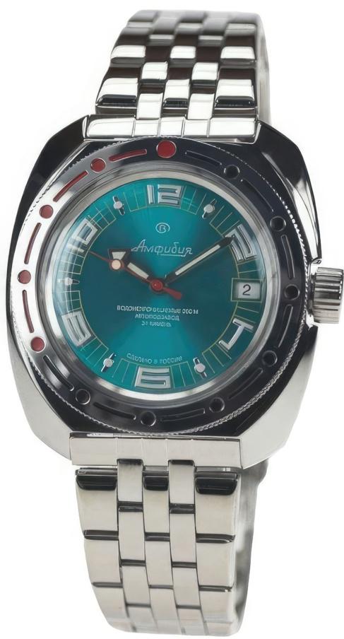 Мужские наручные часы Восток Командирские 710405. Автоматические с ручным подзаводом. Пружина механизма заводится автоматически благодаря естественным движениям владельца в процессе ежедневной носки часов. Также есть возможность ручного завода. Корпус изготовлен из высококачественной нержавеющей стали 316L с высокими антикоррозийными свойствами. На стрелки и отметки нанесен светонакопительный состав, благодаря этому считывать информацию с циферблата возможно и в темноте. На циферблате отображается текущее число месяца. Браслет из нержавеющей стали. Органическое стекло. Часы являются водонепроницаемыми до 20 Бар. Цвет корпуса: Зеленый. Цвет циферблата: Зеленый. Ширина (с заводной головкой): 42мм. Толщина: 12мм. Гарантия: 1 год.