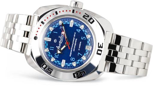 Мужские наручные часы Восток Командирские 710440. Автоматические с ручным подзаводом. Пружина механизма заводится автоматически благодаря естественным движениям владельца в процессе ежедневной носки часов. Также есть возможность ручного завода. Корпус изготовлен из высококачественной нержавеющей стали 316L с высокими антикоррозийными свойствами. На стрелки и отметки нанесен светонакопительный состав, благодаря этому считывать информацию с циферблата возможно и в темноте. На циферблате отображается текущее число месяца. Браслет из нержавеющей стали. Органическое стекло. Часы являются водонепроницаемыми до 20 Бар. Цвет корпуса: Синий. Цвет циферблата: Синий. Ширина (с заводной головкой): 42мм. Толщина: 12мм. Гарантия: 1 год.