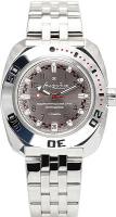 Мужские наручные часы Восток Командирские 710448. Автоматические с ручным подзаводом. Пружина механизма заводится автоматически благодаря естественным движениям владельца в процессе ежедневной носки часов. Также есть возможность ручного завода. Корпус изготовлен из высококачественной нержавеющей стали 316L с высокими антикоррозийными свойствами. На стрелки и отметки нанесен светонакопительный состав, благодаря этому считывать информацию с циферблата возможно и в темноте. На циферблате отображается текущее число месяца. Браслет из нержавеющей стали. Органическое стекло. Часы являются водонепроницаемыми до 20 Бар. Цвет корпуса: Коричневый. Цвет циферблата: Серый. Ширина (с заводной головкой): 42мм. Толщина: 12мм. Гарантия: 1 год.