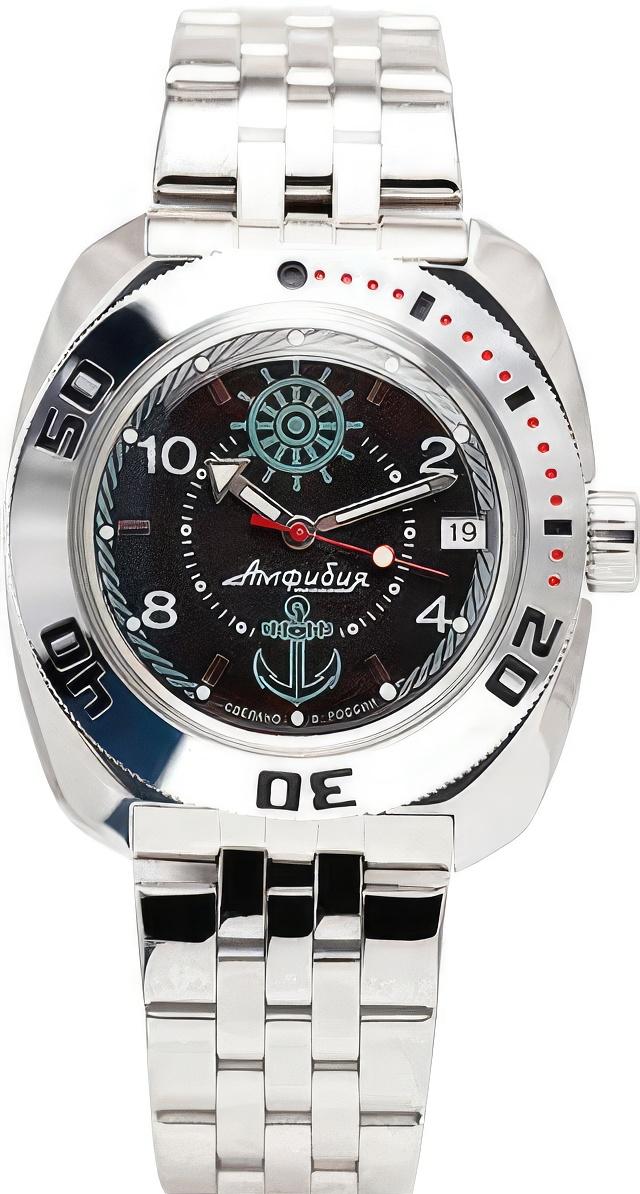 Мужские наручные часы Восток Командирские 710526. Автоматические с ручным подзаводом. Пружина механизма заводится автоматически благодаря естественным движениям владельца в процессе ежедневной носки часов. Также есть возможность ручного завода. Корпус изготовлен из высококачественной нержавеющей стали 316L с высокими антикоррозийными свойствами. На стрелки и отметки нанесен светонакопительный состав, благодаря этому считывать информацию с циферблата возможно и в темноте. На циферблате отображается текущее число месяца. Браслет из нержавеющей стали. Органическое стекло. Часы являются водонепроницаемыми до 20 Бар. Цвет корпуса: Черный. Цвет циферблата: Черный. Ширина (с заводной головкой): 42мм. Толщина: 12мм. Гарантия: 1 год.
