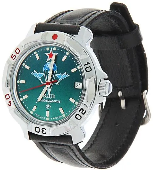 Мужские наручные часы Восток Командирские 811021. Механические с ручным подзаводом. Корпус изготовлен из высококачественной часовой латуни с высокими антикоррозийными свойствами. На стрелки и отметки нанесен светонакопительный состав, благодаря этому считывать информацию с циферблата возможно и в темноте. На циферблате отображается текущее число месяца. Ремешок изготовлен из кожи. Органическое стекло. Часы являются водонепроницаемыми до 3 Бар. Цвет корпуса: Зеленый. Цвет циферблата: Синий. Ширина (с заводной головкой): 40мм. Толщина: 10мм. Гарантия: 1 год.
