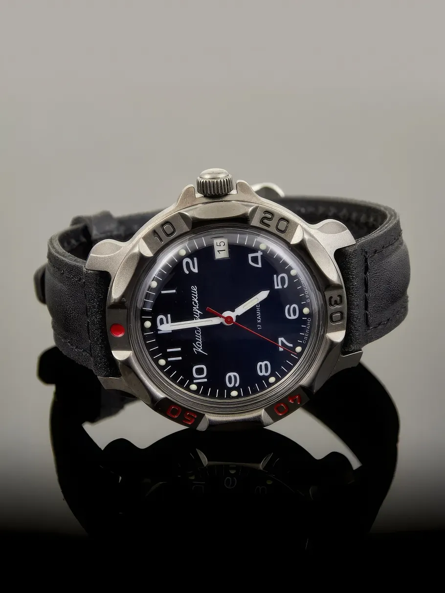 Мужские наручные часы Восток Командирские 81687Б. Механические с ручным подзаводом. Корпус изготовлен из высококачественной часовой латуни с высокими антикоррозийными свойствами. На стрелки и отметки нанесен светонакопительный состав, благодаря этому считывать информацию с циферблата возможно и в темноте. На циферблате отображается текущее число месяца. Ремешок изготовлен из кожи. Органическое стекло. Часы являются водонепроницаемыми до 3 Бар. Цвет корпуса: Серебристый. Цвет циферблата: Синий. Ширина (с заводной головкой): 40мм. Толщина: 12мм. Гарантия: 1 год.