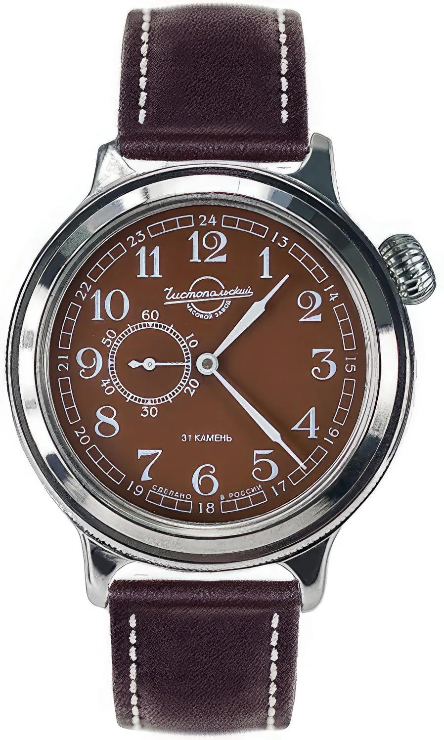 Мужские наручные часы Восток Ретро К-43 550934. Автоматические с ручным подзаводом. Пружина механизма заводится автоматически благодаря естественным движениям владельца в процессе ежедневной носки часов. Также есть возможность ручного завода. Корпус изготовлен из высококачественной нержавеющей стали 316L с высокими антикоррозийными свойствами. Ремешок изготовлен из кожи. Прочное, устойчивое к царапинам минеральное стекло защищает часы от повреждений. Часы являются водонепроницаемыми до 3 Бар. Цвет корпуса: Коричневый. Цвет циферблата: Коричневый. Ширина (с заводной головкой): 43мм. Толщина: 12мм. Гарантия: 1 год.